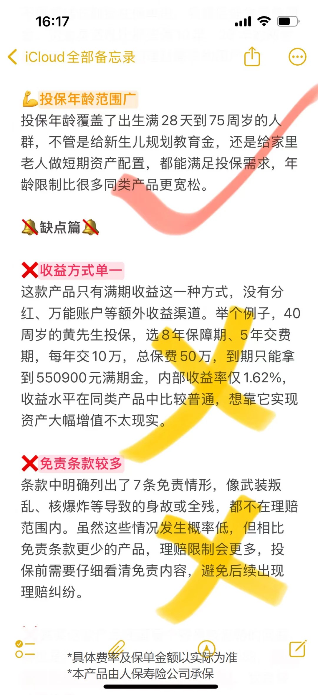 这款产品只有满期收益这一种方式,没有分红、万能账户等额外收益渠道。举个例子,40周岁的黄先生投保,选8年保障期、5年交费期,每年交10万,总保费50万,到期只能拿到550900元满期金,内部收益率仅1.62%,收益水平在同类产品中比较普通,想靠它实现资产大幅增值不太现实。