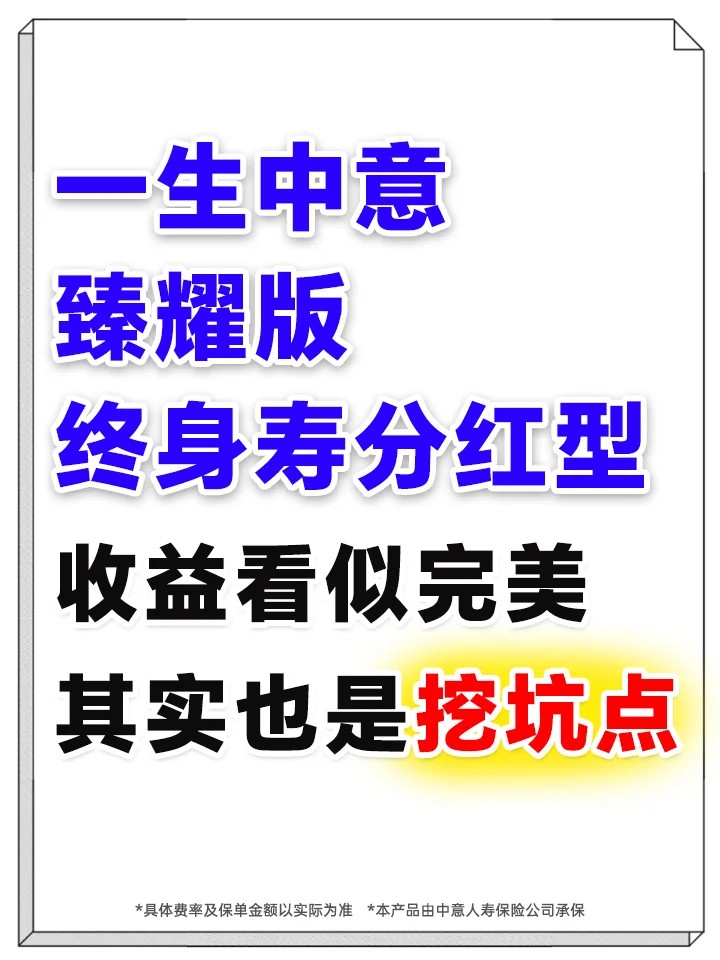 刷到 “一生中意臻耀版” 分红型寿险时,我脑子里都在想 “终于有个能锁利一辈子的地方了”!结果拿着计算器扒条款,越算越慌——那些吹得天花乱坠的 “终身收益”,藏着几个普通打工人超容易踩的坑,准备动闲钱