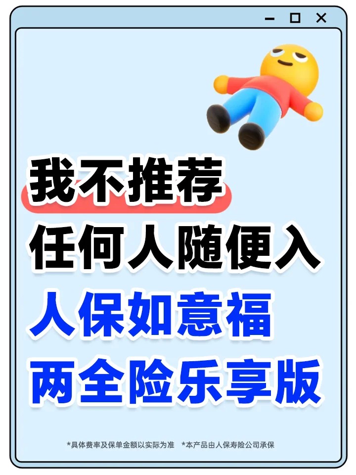 最近总刷到有人推荐人保如意福两全险乐享版,说它“稳赚不赔”“老少都能买”,好多宝子蠢蠢欲动想入手。但作为踩过保险坑的过来人,我得提醒一句:两全险看似 “保钱又保人”,实则藏着不少适配门槛,不是所有人都
