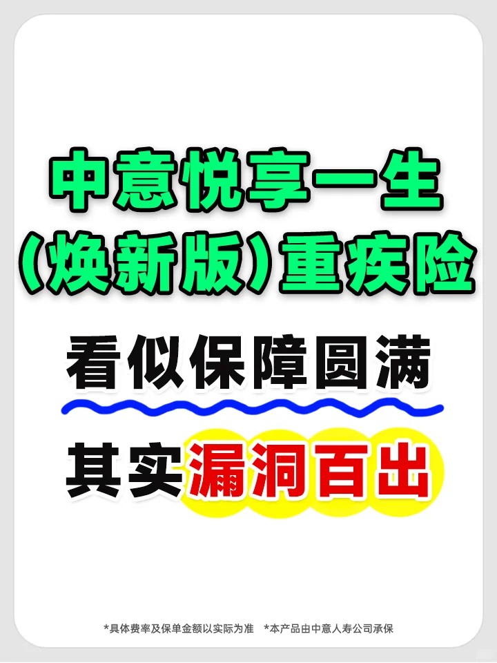 之前刷到中意悦享一生(焕新版)时,我差点直接冲了!70岁能投保、重疾不分组还能多次赔,这配置看着就让人心动,结果仔细一算,藏在细节里的坑比想象中多,今天毫无保留分享给大家,希望能帮到大家!三大王炸优势